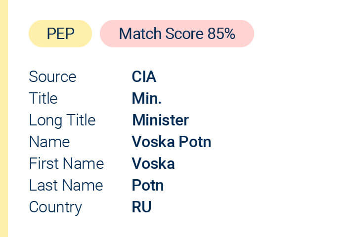 Make the right AML risk decisions with global coverage of sanctions, watchlist alerts, and Politically Exposed Persons (PEPs) data, updated regularly.