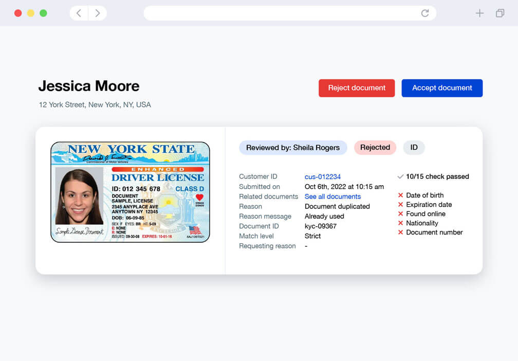 When uncertain, your compliance team can manually accept or reject documents from a single dashboard.